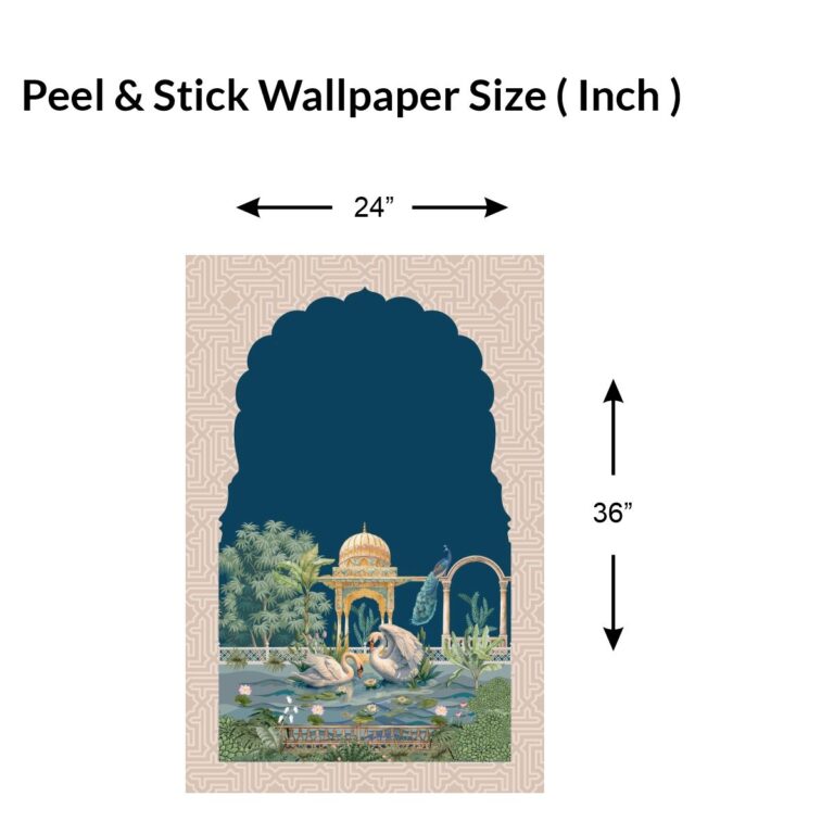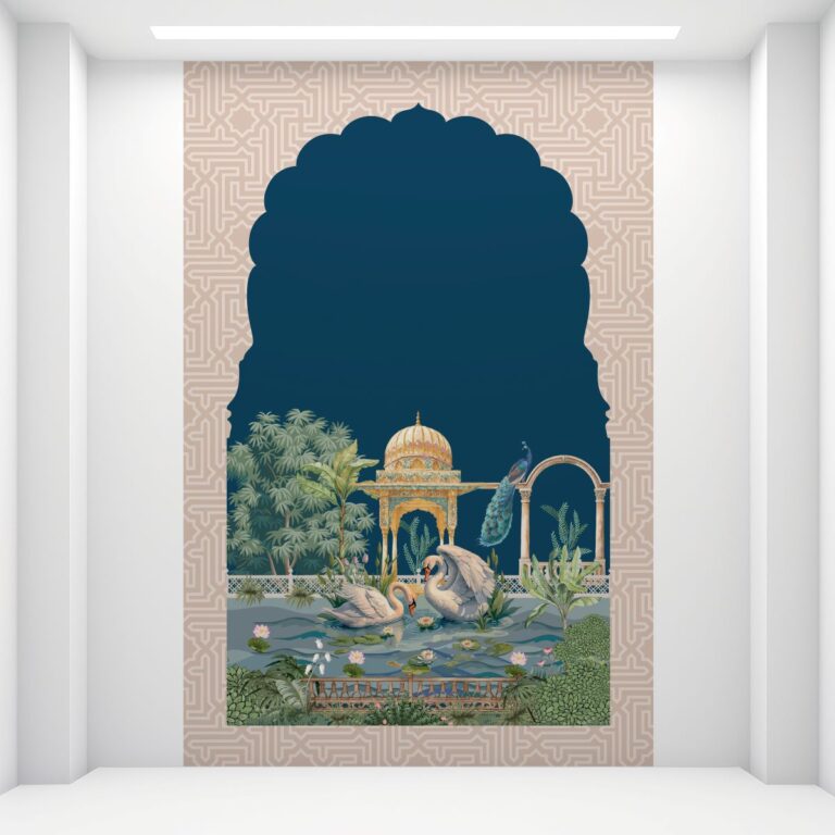 Serene Swan Pond and Pavilion UV Digital Printed Self-Adhesive Wallpaper – Elegant Nature Scene