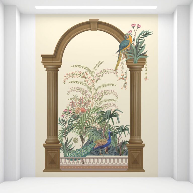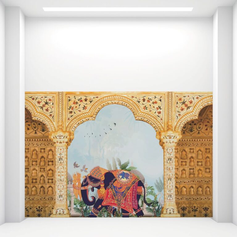 Vibrant Elephant and Botanical UV Digital Printed Self-Adhesive Wallpaper – Exotic Heritage Design