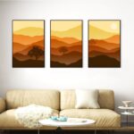 Elevate your home décor with our Abstract Landscape Rolled Canvas Print Set. This stunning set of 3 canvas prints brings the beauty and tranquility of abstract art into your space. Each canvas showcases a detailed and artistic depiction of layered mountains in shades of orange, yellow, and brown. The minimalist yet vibrant design creates a calming and sophisticated atmosphere, perfect for enhancing the aesthetic appeal of any room.