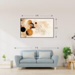 This abstract canvas print is a beautiful blend of circular shapes and splashes of dynamic lines in warm tones of orange, brown, and black. The soft beige background allows the bold, flowing circles and dotted patterns to stand out, creating a sense of movement and modern elegance. Perfect for minimalist or contemporary interiors, this canvas adds a striking yet subtle artistic flair to any space. Whether you place it in your living room, office, or bedroom, it will enhance your decor with its unique, abstract design.