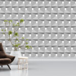 Elevate your interiors with our Three-Dimensional Cube UV Digital Printed Self-Adhesive Wallpaper. This stunning wallpaper showcases a seamless pattern of repeating geometric shapes that create the illusion of three-dimensional cubes. Each shape consists of a central white square surrounded by four trapezoids of varying shades of gray, arranged in such a way that they form a larger square, giving a striking three-dimensional effect.